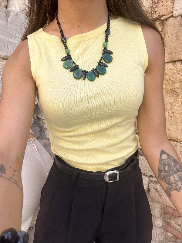 Musculosa cuello bote, el nuevo básico infaltable en tu outfit para combinar en cualquier ocasión. Versátil para usarlo de noche o de día.